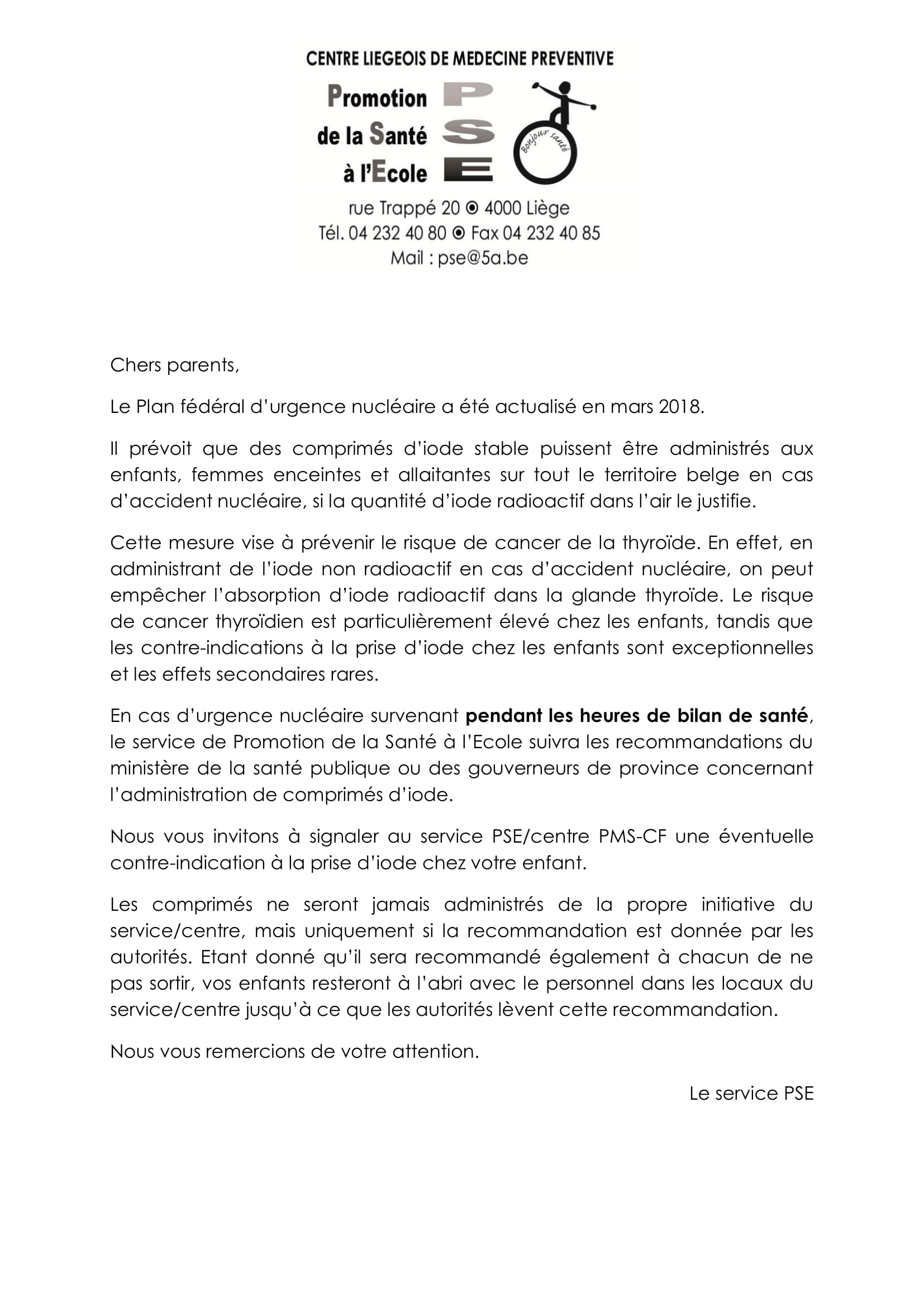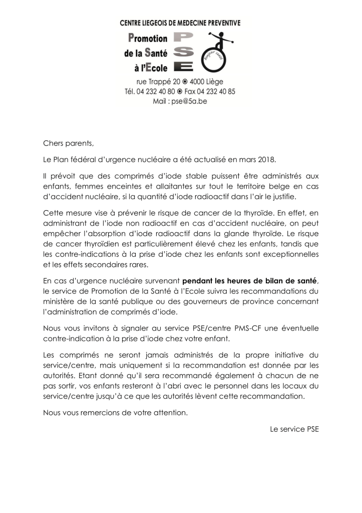 Documents utiles aux parents Consultez ici notre plan d’urgence nucléaire Mon enfant est en maternelle Mon enfant est en primaire Mon enfant est en secondaire Pour tous les parents